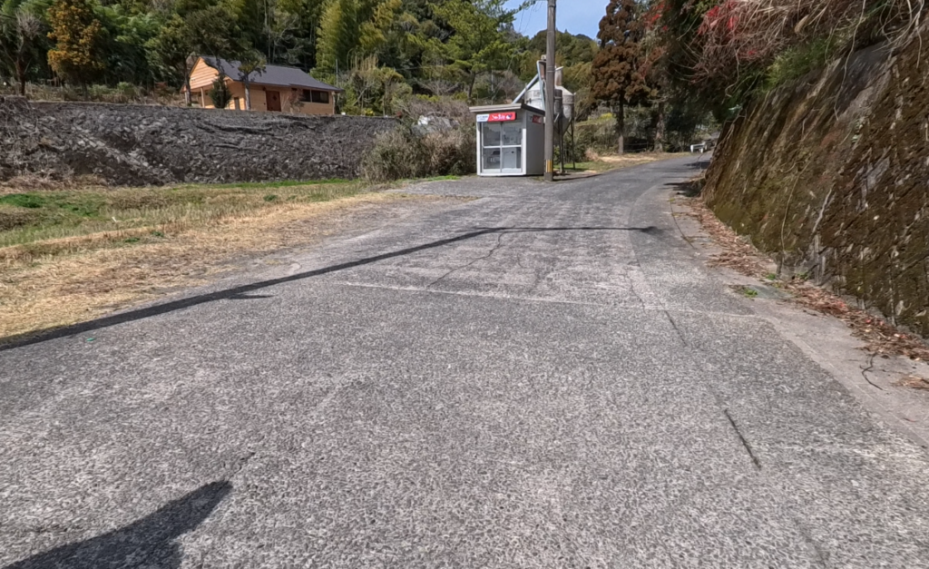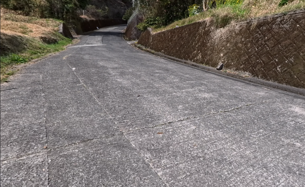 歩いても歩いてもずっとアスファルト。これギリギリ車通れるくらい?